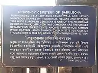 Residency Cemetery, Babulbona also known as Station Burial ground or Babulbona Cemetery[1] is a heritage Christian cemetery situated at Babulbona, Baharampur, Murshidabad district in the Indian state of West Bengal.[2]