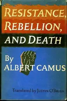 Resistance, Rebellion, and Death (French: Lettres à un ami allemand, "Letters to a German Friend") is a 1960 collection of essays written by Albert Camus and selected by the author prior to his death. The essays here generally involve conflicts near the Mediterranean, with an emphasis on his home country Algeria, and on the Algerian War of Independence in particular. He also criticizes capital punishment ("Reflections on the Guillotine") and totalitarianism in particular.