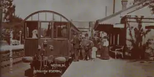 ![]() Resolven station circa summer 1905, with passengers boarding one of the then-new GWR steam railcars | |