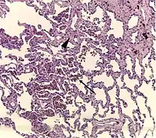 The appearance is similar to desquamative interstitial pneumonia, and some have suggested that the two conditions are caused by the same processes.[5]