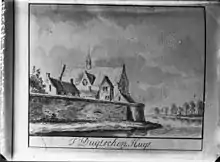 The restaurant and hotel are located in a centuries-old building, named "Duitse Huis". It got its name from the "Hospitaalorde van St.-Marie der Duitsers", known as the Teutonic Knights, that was based here. The monastery was built in 1348. The Knights stayed there till the Napoleonic era when they sold the building. It was then converted into a Military hospital. As such, it served till 1990. After an extensive renovation, the Teutonic Knights returned in 1995 to a part of the complex. The rest was converted into a hotel which opened in 1999.[12] The complex is a Rijksmonument.[13]
