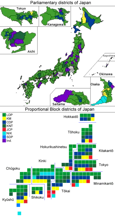 | Kōchi 1 | Gen Nakatani | L | Reelected | Gen Nakatani (L – K) 53.6% Shū Ōishi (Kibō) 29.7% |