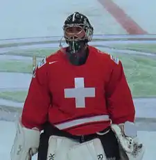 At the 2013 IIHF World Championship, Berra split goaltending duties with Martin Gerber.[1] Berra appeared in four games, winning all four and posting a GAA of 1.00.[20] The unheralded Swiss team went on a "Cinderella run" at the championship, winning their first nine games of the tournament.[21] The ninth win came in the semi-final as Berra led his team to an upset win over the United States. He recorded a shutout in a 3–0 win that guaranteed the Swiss their first World Championship medal in 60 years. Berra described the victory: "I think it's the biggest win since a long, long time for Switzerland and also I think for a lot of players it was the most important game in their life today."[22] The tournament ended in disappointment for the Swiss as, with Gerber in goal, they lost the gold medal game, 5–1 to Sweden.[23] The silver medal matched the best finish in Swiss history.[22]