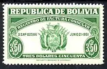 A 1951 consular invoice revenue stamp of Bolivia.