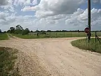 View is northwest at junction of Mieth and Rexville Rds. The railroad once followed the line of trees on the horizon.