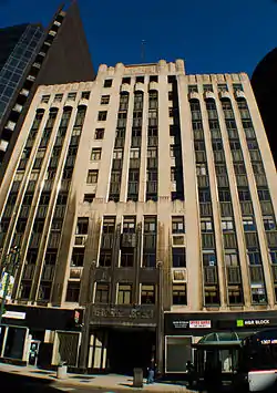 It is an eleven-story, Art Deco style commercial / office building with arcaded shops on the first floor. It was built in 1933[2] of steel frame construction and is faced on the exterior with Indiana limestone. The central portion of the building is a five bay, eleven story "tower" which steps back from the fifth floor.[3]