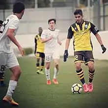 ![]() First Division match against Qarabag-2, on 2020. Bigdeloo is a player with the ball. | |||