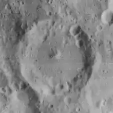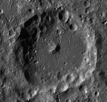 Rheita is a lunar impact crater located in the southwestern sector of the Moon. It was named after Czech astronomer and optician Anton Maria Schyrleus of Rheita.[1] It lies to the northeast of the crater Metius, and northwest of Young. The southwestern rim overlies the edge of Vallis Rheita, a long lunar valley stretching for over 200 kilometers on a line running northeast to southwest. At its widest the valley is 25 kilometers wide and a kilometer deep.