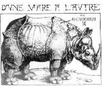The party used as its logo a woodcut of a rhinoceros by Albrecht Dürer, with the words D'une mare à l'autre (a French translation of Canada's Latin motto a mari usque ad mare, playing on the word mare, which means pond in French[15]) at the top.