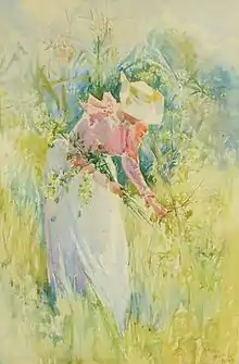 Her paintings were shown at the MacDowell Club, which was established by women to exhibit and promote their works.[17] She was a member of the Woman's Art Club of New York. Nicholls was made vice-president of the New York Water Color Club[18] and belonged to the American Society of Miniature Painters and the American Water Color Society.[9] Nicholls served as co-editor of Palette and Bench.[14]