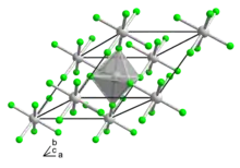 According to X-ray crystallography, the compound adopts the same structure as vanadium trifluoride, wherein the metal achieves octahedral coordination geometry.[1]