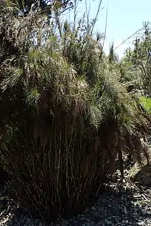Rhodocoma capensis, called the Cape restio, is a species of reed-like perennial grass in the family Restionaceae, native to the southwestern Cape Provinces of South Africa.[1] Growing over 2 m tall, with clumping, jointed stems, it has gained the Royal Horticultural Society's Award of Garden Merit as an ornamental, suitable for borders and architectural applications.[2][3]