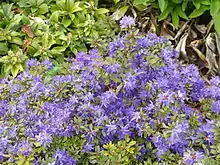 Rhododendron polycladum (多枝杜鹃) is a rhododendron species native to central and northwestern Yunnan in China, where it grows at altitudes of 3,000–4,300 m (9,800–14,100 ft). It is an evergreen shrub that grows to 1.2 m (3.9 ft) in height, with leaves that are narrowly elliptic, oblong or lanceolate, 0.6–1.5 by 0.2–0.4 cm in size. The flowers are lavender to purple-blue.