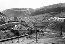 The R&SBR line and the GWR former Llynvi and Ogmore Railway line ran parallel and adjacent from Cymmer to Blaengwynfi. When expensive repairs to Gelli Tunnel and Groeserw Viaduct on the R&SBR line became necessary in 1960, one and a half miles (2.4 km) of the R&SBR line was closed, and the GWR line was used. The L&OR line was connected into the R&SBR station, and east of the station a slue was made into the GWR line. A new junction was made some distance west of Blaengwynfi, where the two routes separated once again. The new arrangement was commissioned on 13 June 1960.[5]
