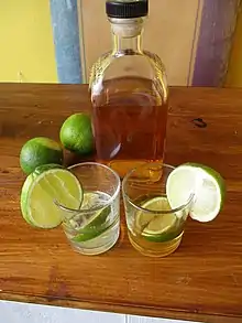 Ti' Punch, a rhum agricole cocktail, using rhum blanc (left) and rhum ambré (right)