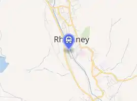 Rhymney railway station serves the town of Rhymney in Wales. Situated on the Valley Lines network 23 miles (37 km) north of Cardiff Central, it is the terminus of the Rhymney Line. The station has sidings to the west of its single platform which are used for the overnight stabling of the diesel multiple unit trains