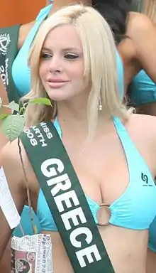 ![]() Ria Antoniou at the Miss Earth 2008 press presentation (28 November 2008) | |