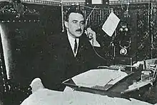 In late 1924 Oreja was first admitted by Alfonso XIII[57] and then nominated civil governor of the Santander province.[58] He served at this role for 26 months, until early 1927.[59] Little is known of his tenure; in historiography it did not attract attention,[60] while contemporary press reported mostly routine duties. Apart from usual admin tasks he was noted as engaged in primoderiverista propaganda[61] and remained busy building the Union Patriótica structures in Cantabria;[62] by virtue of his governor role he presided over the provincial Caridad de Santander.[63] Newspapers hailed him as the administrator who enforced high moral standards and fought pornography.[64] Oreja enjoyed excelled relations with the court and was twice admitted by the ruler in 1926.[65] His photos were published in numerous magazines when in 1926 Alfonso XIII inaugurated the automated Telefónica Nacional phone switchboard by placing a call to Oreja's office in Santander.[66]