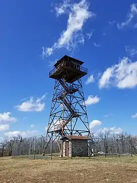 ![]() Rich Mountain Lookout Tower as viewed from the parking lot | |