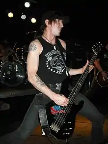 Rich Mullins is the former bassist of the alternative, desert rock band Karma To Burn,[1] Speedealer (originally REO Speedealer before lawsuit), and the rock band Year Long Disaster,[2] both of which shared the bandmate Daniel Davies. He is known for his slouched gait whilst playing his bass.
