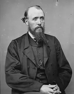 Richard Davies (Mynyddog) (10 January 1833 – 14 July 1877) was a popular Welsh-language poet, singer, and Eisteddfod conductor. The original source of the name Mynyddog is from Newydd Fynyddog, a hill near his home. Another submission is the name comes from Mynyddog Mwynfawr, a character in an early Welsh poem. Use of an adopted Welsh-language pseudonym or bardic name (ffug enw) is common among Welsh poets.