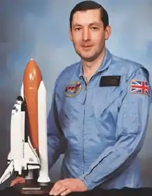 Born in Birkenhead (Cheshire), he was educated Clifton College. He studied at the Royal Military Academy, Sandhurst and received a BSc in telecommunications at the Royal Military College of Science, Shrivenham in 1972. At the end of his military career he was Lieutenant-Colonel in the Royal Corps of Signals of the British Army. After leaving the Army, he worked for British Aerospace, later for Matra Marconi Space and finally with Astrium. On retirement he studied at King's College London for a history master's degree and his dissertation on 'Britain and Human Space Flight' was published.[1] In July 1984 he was chosen, from the candidates of RAF and Royal Navy, as the backup crew payload specialist to fly with the Space Shuttle mission STS-61-H, which was planned to deliver the British Skynet 4A satellite to space.[2] However, after the Challenger accident this space flight was cancelled, and he left the space program without having flown into orbit.