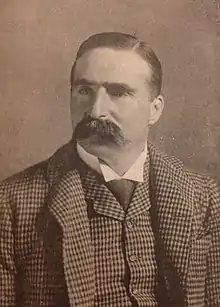 By February 1885 he had been promoted to captain, and his unit had been renamed the Royal Fusiliers (City of London Regiment).[22] On 10 January 1887 he was appointed adjutant of the 4th Battalion of the regiment, the Militia unit of the regiment.[23] A regular officer was normally given this post in Militia units to organise training and generally maintain standards. His posting lasted the usual 5 years.[24] He then retired from the regular army on 4 May 1892.[25] On 8 August 1894 he was commissioned major in the 1st (Brecknockshire) Volunteer Battalion, South Wales Borderers,[26] and on 1 November 1895 was appointed Brigade Major for the South Wales Brigade of the Volunteer Force.[27] On 12 July 1899 he was granted the honorary rank of lieutenant colonel.[28] He resigned his Volunteer commission on 26 May 1906, retaining his rank and with permission to continue wearing his uniform.[29]