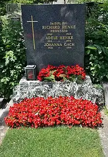 After World War II Richard Henke directed the Evening School for Chemistry at the Viennese highschool HTL Ottakring, HTL Schellinggasse. Thereafter, Henke worked at the Higher Federal Education and Research Institute for the Chemical Industry Vienna in the research areas "Chemistry and Chemical Technology". He was in charge of the operational laboratory at the departments of mechanical engineering and electrical engineering and was the administrator of the chemical-technical laboratory.[7] Henke also developed a shoe polish, which did not go into production. In 1963, shortly before his death, he was appointed director of the Higher Federal Education and Research Institute for the Chemical Industry. This function, however, he could no longer compete due to a sudden heart attack that led to death. Richard Henke was buried in the family grave on Ober Sankt Veiter Friedhof.