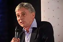 Leonard somewhat distanced himself from Jeremy Corbyn in 2017, saying "I'm too long in the tooth to be a Corbynista".[25] However, in his 2018 Labour Party Conference speech, he "confessed" to voting for Corbyn to be leader both in 2015 and 2016 because he believed Scotland would need a radical Corbyn government.[26] Under his leadership, Scottish Labour would also go on to adopt the "For the Many, Not the Few" branding of the UK Labour Party.[27]