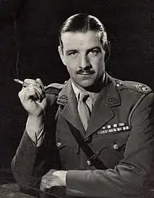Although many of the men were asleep, the speech put new strength and hope into the men who heard it.[31][32][33] Lonsdale took command of the parachute battalions in the sector, while Thompson took charge of the artillery, South Staffords and Glider Pilots.[32] However, on 21 September Thompson was injured by mortar fire and Lonsdale took overall command of the sector, which was renamed Lonsdale Force.[29] For several days they fought off determined German attacks in their sector, usually minor infantry encounters.[34] On many mornings Royal Artillery units from XXX Corps, south of the river, laid barrages just forward of the force's positions to disrupt any enemy buildups, on one occasion accidentally shelling their own men.[35] On the morning of Monday 25 September, Urquhart agreed to withdraw his division south of the river, but he would have to wait until nightfall.[36] It was on this day that the Germans made their most significant gains, breaking through the British perimeter at the northern end of Lonsdale Force's sector and sweeping south to the South Staffords positions. The German forces succeeded in overrunning several artillery positions before being forced back.[37] The 1st Airborne withdrew that night, although Lonsdale force were amongst the last to fall back to the river after waiting for the units further north to fall back past them. Nevertheless, they were at the back of the queues to cross the river and many men were left behind.[38] Lonsdale saw as many men over as possible before he left. No boats were running by the time he came to leave and so he swam the river, a task made more difficult by his injuries.[39]