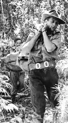 On 12 July 1961, after cutting their way through miles of thick brush with machetes, carrying their now limited supplies, and working off compass bearings and the stars, the expedition finally came across the river on the border of the Mato Grosso and Pará states. A camp with a jetty was built and the five porters started hewing two dugout canoes out of fallen tree trunks using axes and adzes. After this was completed the team was ready to descend the Iriri.[8][9][10] The survey team then concluded that the river they found was not in fact the Iriri, but that they were seven miles off course. By late August, after adjusting their course and still not able to locate the river, the team began running low on supplies, especially food. It was decided that Hemming should head back to Rio alone and arrange for food and equipment to be flown out by the Brazilian Air Force. Arriving back in Cachimbo during the first week of September, Hemming was given the news by Lambert that Mason had been killed. It turned out that on 3 September, Mason had been heading back from Cachimbo by himself with a few supplies when an unknown indigenous hunting party laid an ambush and killed him with 6-foot long bamboo poison arrows and clubs.[11] When Mason did not return, Lambert and a scout went looking for him. Hemming describes in his 2004 book, Die If You Must what they discovered on the trail that they had cut:[12]