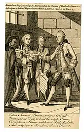Oliver was returned as Member of Parliament for City of London on 11 July 1770.[1] On 6 December 1770 he seconded Serjeant Glynn's motion for a committee to inquire into the administration of criminal justice (Parl. Hist. xvi. 1215-7). In March 1771 he became engaged in the struggle between the City of London and the House of Commons led by Brass Crosby and was committed to the Tower of London by order of the speaker on the 20th of that month (ib. xvii. 155). On 6 April he was brought up on a writ of habeas corpus before Lord Mansfield, who declined to interfere, as parliament was still sitting. A similar application was made on his behalf to the court of exchequer on 30 April, with the same want of success. The parliamentary session, however, closed on 8 May, when Oliver and Crosby were released from the Tower, and conducted in a triumphal procession to the Mansion House. Though formerly an active supporter of Wilkes, Oliver refused to serve as sheriff with him in 1771 (Gent. Mag. 1771, p. 189), and was elected to that office with Watkin Lewes on 1 July 1772. The friends of Wilkes were so enraged at the election of James Townsend, MP as Lord Mayor in this year that they appear to have accused Oliver "of having taken the vote of the court before their party had arrived" (Fitzmaurice, Life of William, Earl of Sherburne, 18751876, ii. 289). On 26 January 1773 Oliver spoke in favour of Sawbridge's motion for leave to bring in a bill for shortening the duration of parliaments (Parl. Hist. xvii. 692-5). He was returned again for the City of London in the 1774 general election.[1] On 1 February 1775 he seconded a similar motion (ib. xviii. 216). On 27 November 1775 his proposed address to the king respecting 'the original authors and advisers' of the measures against the American colonies was defeated by 163 votes to 10 (ib. xviii. 1005–7, 1021). His name appears for the last time in the 'Parliamentary History' on 10 May 1776, when he seconded Sawbridge's resolution that the American colonies should 'be continued upon the same footing of giving and granting their money^ as his Majesty's subjects in Ireland are, by their own representatives' (ib. xviii. 1353). In September 1778 Oliver sent a letter to the livery of London declining being a candidate for Lord Mayor of London and on 25 November 1778 resigned as an alderman. Shortly afterwards he sailed to Antigua in order to look after his West Indian estates. He continued to represent the City of London until the dissolution of parliament in September 1780.