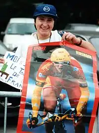 Richard Virenque[n 1] (born 19 November 1969) is a retired French professional road racing cyclist. He was one of the most popular French riders with fans[3] for his boyish personality and his long, lone attacks.[n 2] He was a climber, best remembered for winning the King of the Mountains competition of the Tour de France a record seven times, but he is best known from the general French public as one of the central figures in a widespread doping scandal in 1998, the Festina Affair, and for repeatedly denying his involvement despite damning evidence.