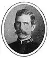 When Wainwright did finally leave Havana, he hauled down the flag himself. On his arrival in Washington, the U. S. Navy was in the process of purchasing vessels that could be used in the war. Among them was a yacht, the Corsair, owned by J. P. Morgan. She was converted into a gunboat, renamed the Gloucester, and commissioned with Wainwright in command. In the Battle of Santiago de Cuba he engaged the Spanish torpedo boats Furor and Plutón, driving them ashore as wrecks with her battery of 6-pounders.[7] The victory came with no casualties, which was attributed to "The accuracy and rapidity of her fire, making the proper service of the guns on the Spanish ships impossible." Wainwright was commended for his valor in this action[2][8] and was advanced by ten numbers on the promotion seniority list.[9]