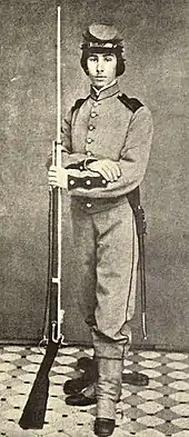 During the American Civil War, he enlisted in the state's Emergency Volunteer Militia as a private in Landis' Philadelphia Battery at the time of the Robert E. Lee's 1863 invasion of Pennsylvania. After the Confederates were defeated in the Battle of Gettysburg, Gilder and his unit were mustered out in August. The death of his father, while serving as chaplain of the Fortieth New York Volunteers, obliged him to give up the study of the law.[2]