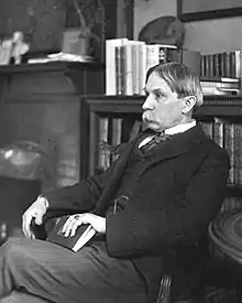 A little later, he became a reporter on the Newark (New Jersey) Advertiser, of which he was later editor. With Newton Crane, he founded the Newark Register. In 1870, he became editor of Hours at Home, a monthly magazine published by Scribner's. It merged with Scribner's Monthly, which was edited by J. G. Holland. Gilder became managing editor. When Holland died in 1881, Gilder became editor. In November 1881, the monthly was renamed as The Century Magazine, and Gilder remained its editor until his death.[2] Gilder's assistant editor at Century was Sophia Bledsoe Herrick.[3] Under Gilder's editorship, The Century became one of the most esteemed periodicals in the country and Gilder himself became influential enough that his biographer Herbert Smith referred to the 1880s as "the Gilder Age". He published the works of William Dean Howells, Henry James, Mark Twain, and Walt Whitman[4]