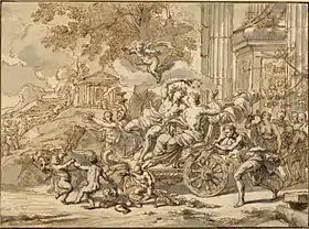 Richard van Orley was a very gifted graphic artist who produced many prints after his own designs or after those of other artists, including famous Flemish artists. An example is his The drunk Silenus after a painting of Rubens. Many of his drawings were designs for prints.[5]