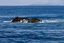 The limestone pinnacle rises from the sea floor depth of about 50 m. up to the surface at low tide.