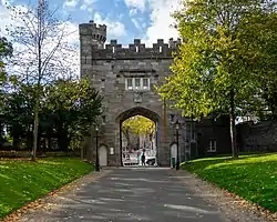 The Richmond Tower is an historical gateway to the Royal Hospital, Kilmainham, Dublin, designed by Francis Johnston and named after the Duke of Richmond, the Lord Lieutenant at the time. Built between 1810 and 1811,[1] the gateway originally stood beside the River Liffey at Barrack Bridge at the junction of Watling Street and Victoria Quay, the tower had to be moved after the building of nearby Kingsbridge Station in 1846 caused traffic congestion at the site. The tower was dismantled and erected at its present location the following year at the expense of the railway company.[2]