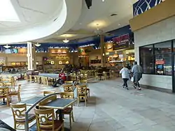 The Richmond Town Square Branch of the Cuyahoga County Public Library opened in the mall in 1988.[3] Originally housed in a freestanding boutique kiosk, the branch showed significant circulation growth. The kiosk was forced to close in August 1998 due to a major renovation of the mall, but the branch library reopened in September 1999 in a 1,200-square-foot (110 m2) location by the northeast mall entrance, next to Sears.[3]
