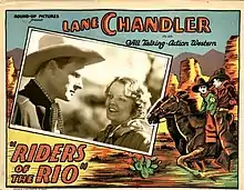 Riders of the Rio is a 1931 American western film directed by Robert Emmett Tansey and starring Lane Chandler, Sheldon Lewis and Ben Corbett.[1] It is an independently-produced second feature, shot partly on location around Palm Springs, California.