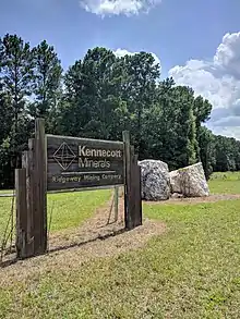 Gold was first found in the Carolina Slate Belt in 1827[6] at the Haile mine in nearby Lancaster County. Placer mining, hydraulic mining and later use of the Newbery-Vautin chlorination process kept South Carolina mines in operation but by the year 1900 mining became unprofitable and had mostly stopped.[6] In the 1960s interest in mining the Ridgeway area increased after John Chapman found gold[6] while panning in nearby creeks. Amselco Minerals, a company later merged with Kennecott Minerals, began investigating Ridgeway after geologist Irving T. Kiff noticed similarities between Ridgeway's slate outcrops and outcrops at the Haile mine.[8] Kennecott Minerals began buying land for the Ridgeway mine in 1980 and began mining in 1988.[6] For most of its life the Ridgeway Mine was the only active gold mine in the eastern United States.[9]