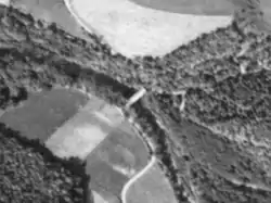 ![]() Aerial view of the bridge over Roaring Creek in October 1938 | |