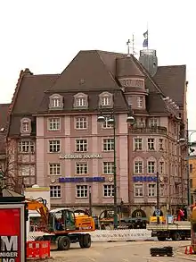 The Brauhaus Riegele was created in 1884, when Sebastian Riegele Sr. acquired the brewery "Zum Goldenen Ross", which originated in 1386.[2] In 1911, a new building was built outside the city as well as the construction of the "Riegelehaus" on the Königsplatz.