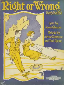 "Right or Wrong" is a jazz ballad from 1921. Composed by Arthur Sizemore and Paul Biese, with words by Haven Gillespie, it is described by the original sheet music as "a beautiful fox-trot ballad."[1]