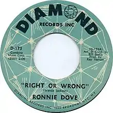 "Right or Wrong" or "Right or Wrong (I'll Be with You)" is a song written and originally recorded by Wanda Jackson, an American country, rock, and Christian music artist. Originally, the song was a major country and pop hit for Jackson in 1961. A second version was released in 1964 that became popular by American pop artist, Ronnie Dove.