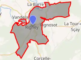 Rigney (French pronunciation: [ʁiɲɛ]) is a commune in the Doubs department in the Bourgogne-Franche-Comté region in eastern France. Its hamlet La Roche-sur-l'Ognon is also the most likely place of origin of the first ducal family of the Duchy of Athens, the de la Roche family.