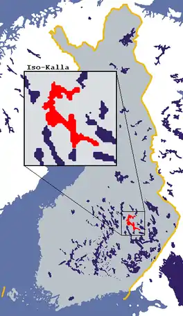 ![]() Location of iso-Kalla, which includes lakes Riistavesi, Kallavesi, Suvasvesi Muuruvesi. | |
