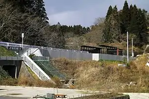 • "JR気仙沼線 【前面展望 4】 本吉⇒歌津" (video). YouTube.com. Archived from the original on 2021-12-13. Retrieved 2011-04-26. video of a train trip from Motoyoshi Station to Utatsu Station in 2009, passing through Rikuzen-Koizumi Station, Kurauchi Station, and Rikuzen-Minato Station at around 02:35, 03:55, 05:17 minutes, respectively, without stopping. Satellite photos (e.g., in Google Maps) showed that large sections of track and railway bridges were severely affected or washed away by the 2011 tsunami. Motoyoshi Station was undamaged, Rikuzen-Koizumi Station was destroyed, Kurauchi Station was damaged, and Rikuzen-Minato Station was destroyed.