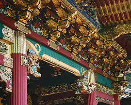 The temple also administers the Taiyū-in Reibyō (大猷院霊廟), which is the mausoleum of Tokugawa Iemitsu (1604–1651), the third Tokugawa shōgun.[8] Technically a shinto shrine, it was built in 1653 in the Gongen-zukuri style and it is designated a National Treasure of Japan in that category. It has been described by the World Heritage Committee as "a pure masterpiece of architecture and decoration". 37 other structures in the temple complex are designated as Important Cultural Properties.[9]